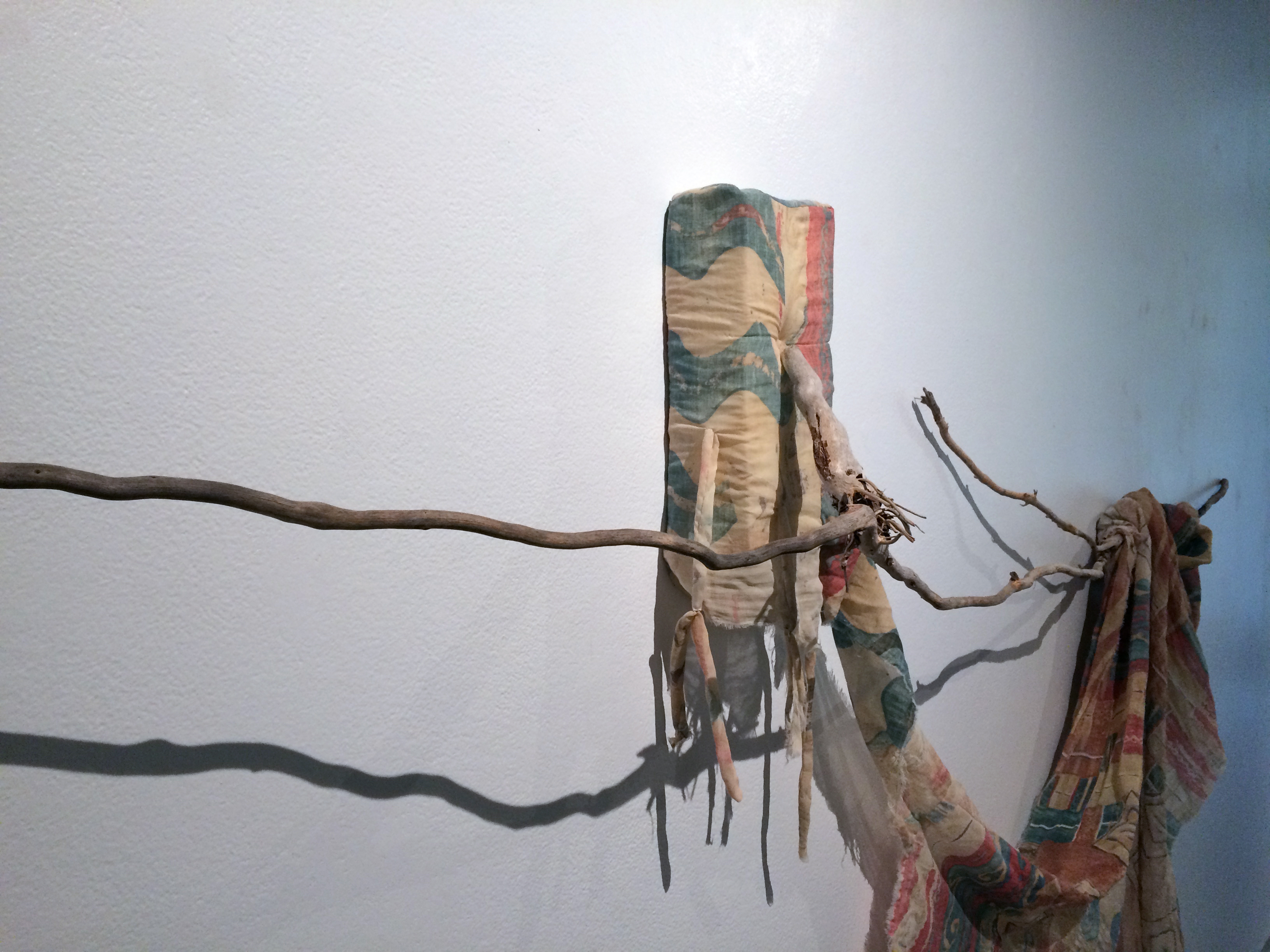 Down on the beach a fresh wrack of brightly coloured mangrove leaves littered the aligning tideline. Branches, freshly cut, ensnared with their long held burdens; fishing lines and cloth used by the coastal homeless. Uprooted and misplaced, survival is an entanglement of spiralling need.